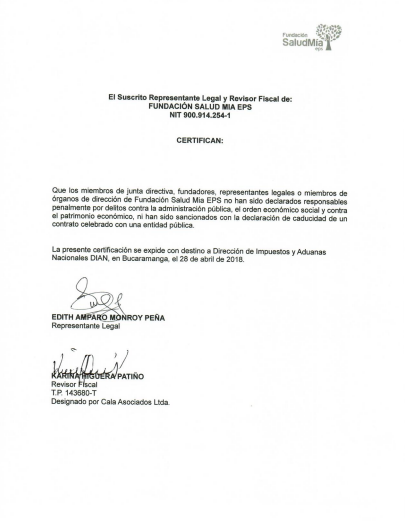 La Fundación Salud Mia EPS identificada con Nit 900.914.254-1 domiciliada en la Calle 154 150-221 de la Ciudad de Floridablanca - Santander, es una entidad sin animo de lucro cuyo objeto social es ser una Empresa Promotora de Salud para operar el aseguramiento en salud, fundada por la Fundación Cardiovascular de Colombia identificada con Nit 890.212.568-0 como una opción que permita transformar el aseguramiento en salud de los santandereanos.